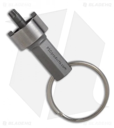 This Deluxe Spanner Tool with a Torx T-10 bit is manufactured by PSD Products and works specifically with Strider knives. The bit end is 1/4″, which will fit standard 1/4″ drivers. This tool is made from hardened and tempered 440C steel. Includes split ring.